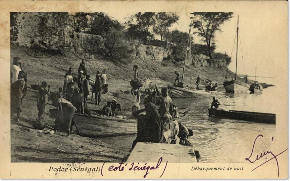 A l'Escale de Podor, terminus de la navigation des bateaux quillés pour l'océan, il fallait donc transférer les marchandises sur des péniches à fond plat, en vue de les acheminer au-delà par voie fluviale, ou sur les rives, en vue de les acheminer au Nord (Mauritanie) et au Sud (Sénégal) voies terrestres (chameaux et chevaux).