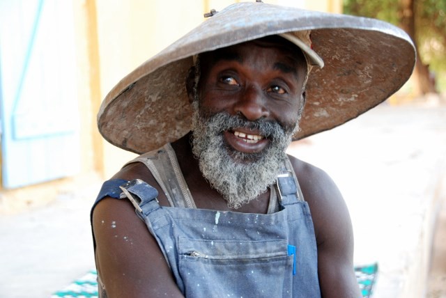 Et parmi les artisans : Grand père, jardinier et peintre (photo avec le chapeau en métal), Diabou Sakho, teinturière (photo)